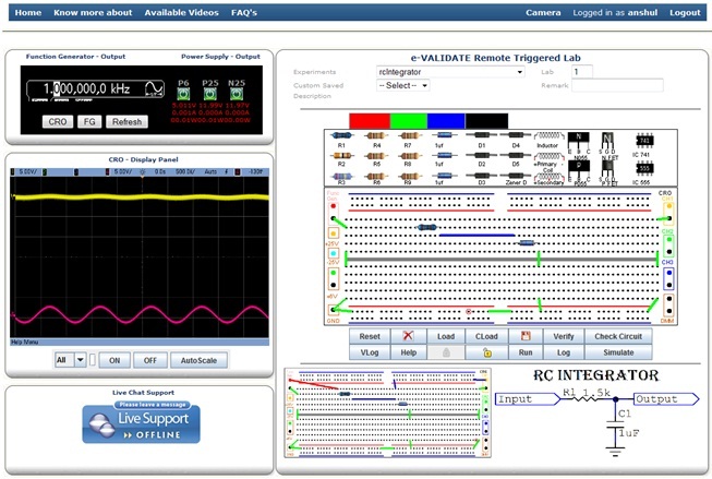 To perform the live experiment on the lab, the student needs to login, or create a login id (if new).