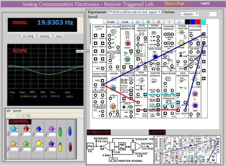 Now to perform an experiment you can wire up the circuit on workspace. You can also select any experiment from the drop down list, as in this case is "PCM Encoding Decoding Bandlimited Continuous Signal" & hit Run button.
