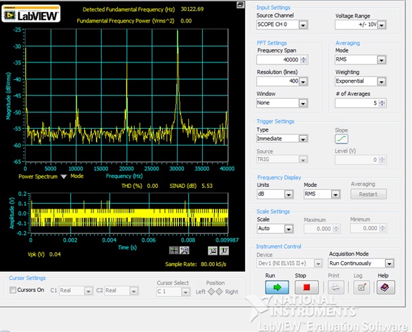 The frequency spectrum (in linear scale) can be found in the DSA Analyzer. It is shown in the Fig.2 below:
