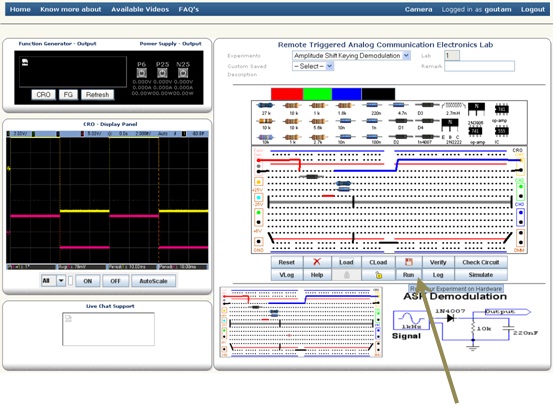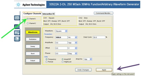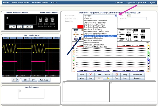 When all the components are connected properly, student should click on FG (Function Generator), after clicking on FG, a new window of function Generator will appear, this Function Generator have two different channels to provide two different signals at a time simultaneously. Channel 1 is using as Signal and channel 2 is Carrier for this circuit.